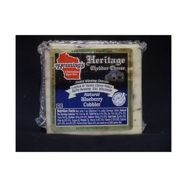 WHITE CHEDDAR CHEESE BLENDED PERFECTLY WITH BLUEBERRIES. SUGGESTIONS: A GREAT ADDITION TO YOUR HOLIDAY MEAL. SLICE THINLY AND ADD TO YOUR BAGEL OR CREPE.